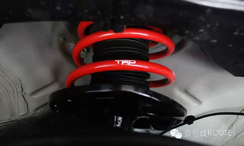 至于降低车身工序,则由TRD的运动短弹簧负责,降低车身高度大概是40mm左右,效果非常不俗。