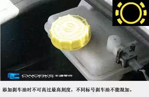如果刹车油/片灯亮起,请立刻停车检查。首先观察刹车油壶是否缺油,如果缺油请先将刹车油补充到标准刻度线(切记不同标号刹车油不可混加),随后应尽快将车开到专业维修店进行刹车片及刹车盘的检查。往往刹车油/片灯都代表刹车片或刹车盘磨损过度需要更换。